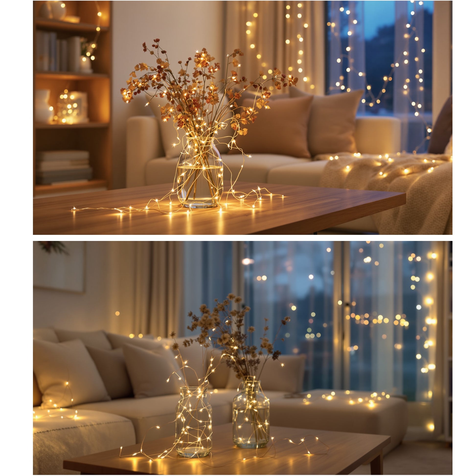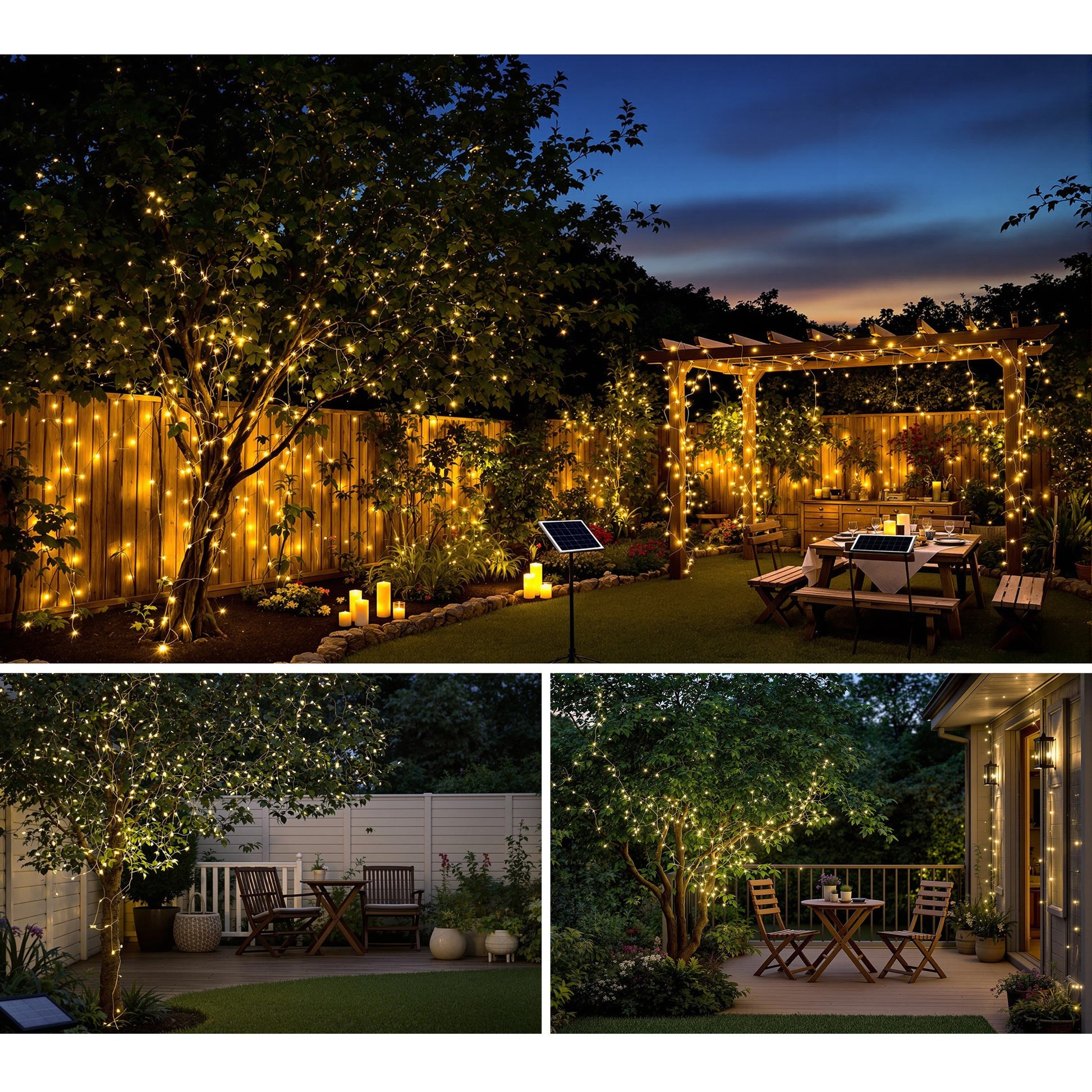 Con 44 metros de longitud y 400 LED, podrás decorar árboles, barandillas, pérgolas, terrazas, balcones o interiores. Elige entre 8 modos de iluminación (fijo, parpadeo, secuencial, etc.) para crear el ambiente perfecto en fiestas, bodas, cenas románticas, Navidad o cualquier celebración especial.